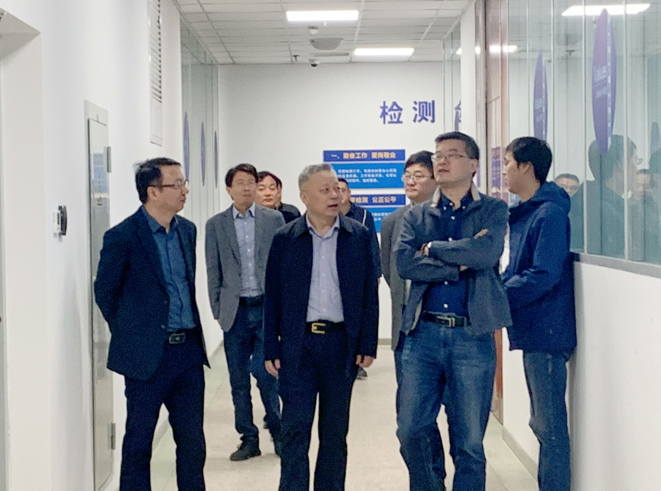 鎮(zhèn)江建科集團董事長伊立一行實地參觀了淮安市建筑科學研究院總部辦公大樓的園區(qū)建設和我院檢測中心的業(yè)務接待大廳、各個檢驗檢測實驗室和圣元路分部的檢驗檢測場所,并對檢測中心的檢測能力與技術(shù)水平高度贊揚。